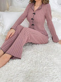 Autumn Winter Warm Pajamas Set for Woman Sleepwear Lapel Bow Fashion Sexy Long Sleeve Tops and Trousers Home Suit