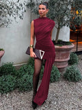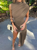 Balitops Summer Draped Ruched Sexy Mini Dress Women 2025 New Irregular High Waist Slim Fit Dress Female Elegant Club Tank Dress